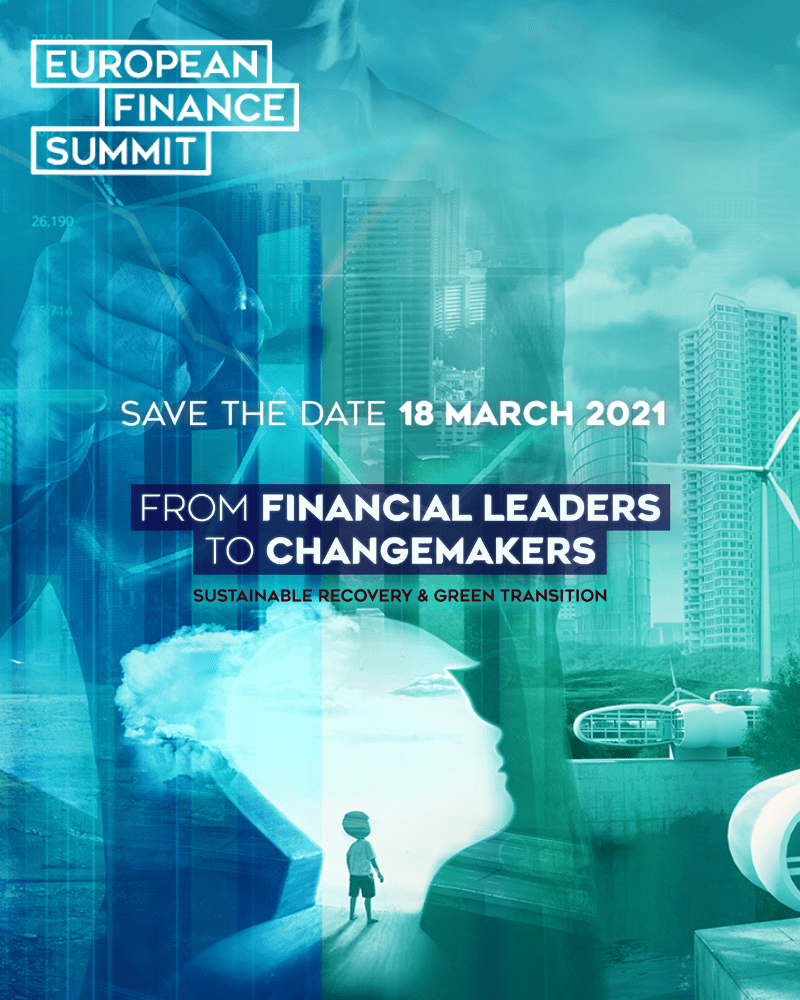 The European Finance Summit, scheduled for March 18th, is focused on the theme, “From finance leaders to changemakers – Sustainable recovery & green transition.”